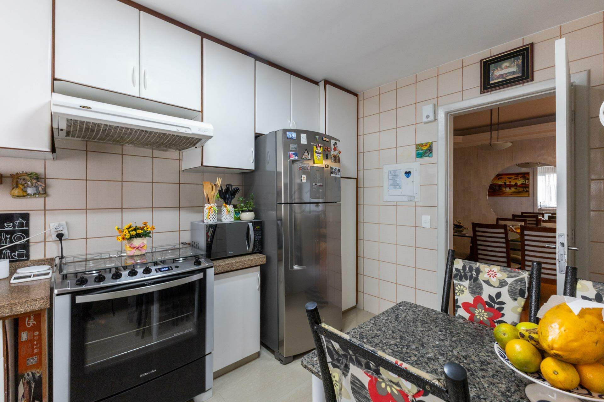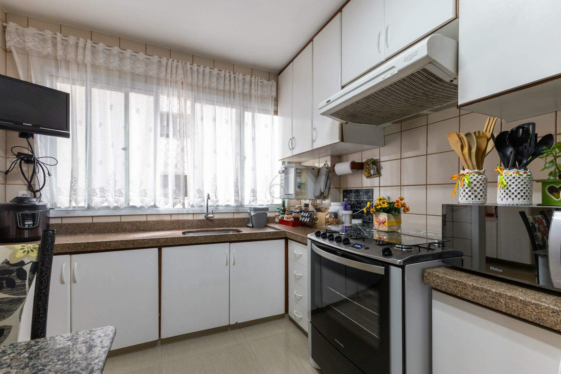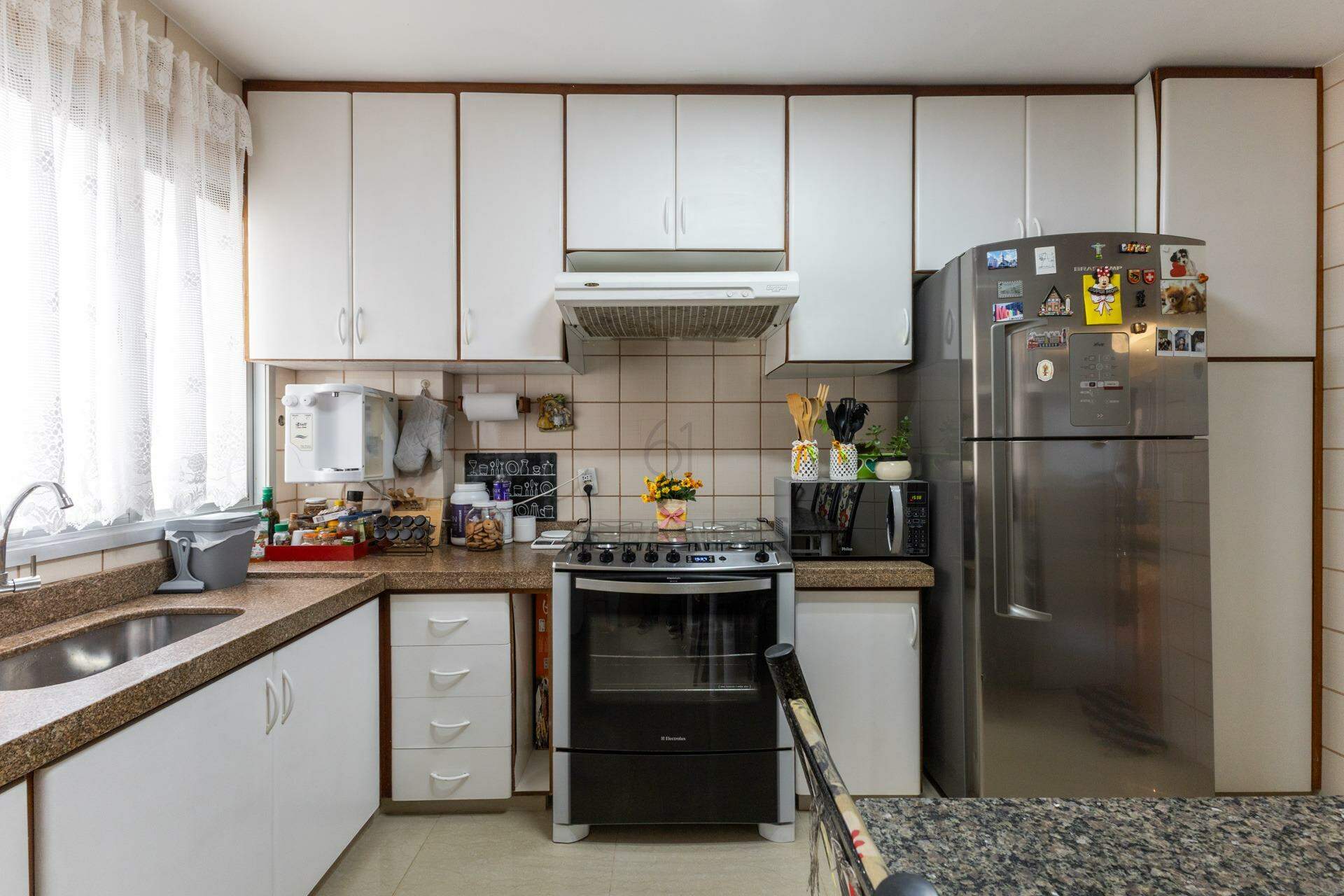 Cozinha espaçosa com armários e muita iluminação natural