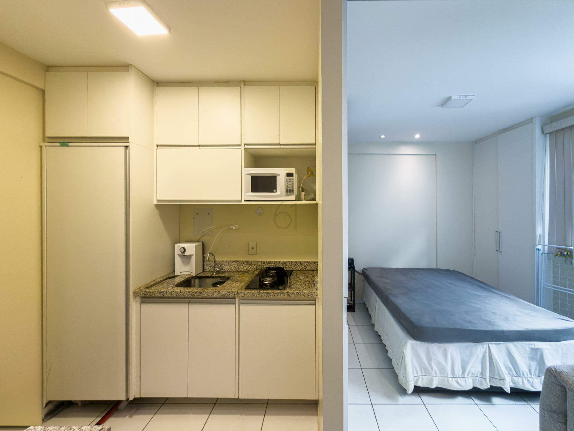 Kit totalmente mobiliada, localizada no 1º andar, com 25 m² de área útil, composta por: